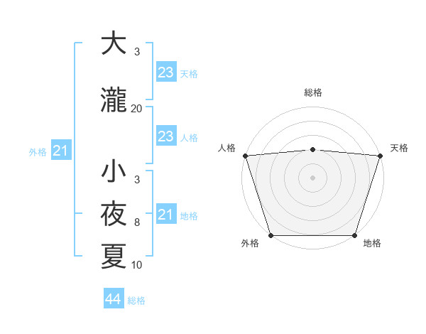 大瀧 小夜夏さんを姓名の画数から五運を鑑定
