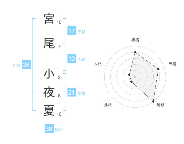 宮尾 小夜夏さんの総格は38画の4点!