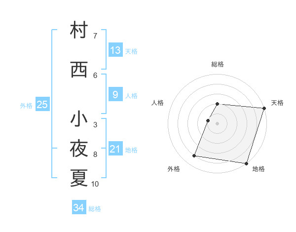 村西 小夜夏さんを姓名の画数から五運を鑑定