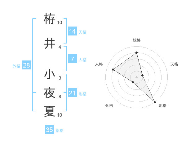 栫井 小夜夏さんの総格は35画の4点!