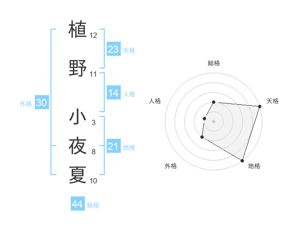 植野 小夜夏さんの総格は44画の2点!