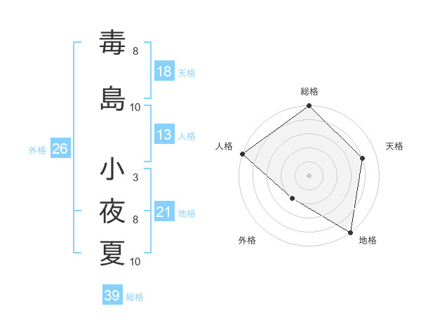 毒島 小夜夏さんの総格は39画の5点!