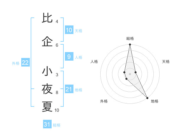 比企 小夜夏さんを姓名の画数から五運を鑑定
