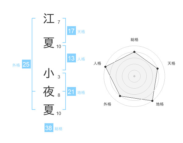 江夏 小夜夏さんの総格は38画の4点!