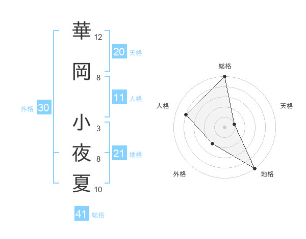 華岡 小夜夏さんを姓名の画数から五運を鑑定