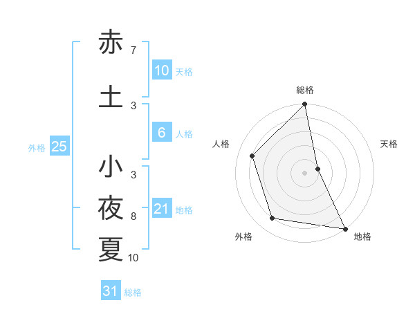 赤土 小夜夏さんを姓名の画数から五運を鑑定