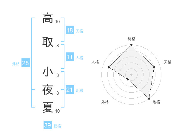 高取 小夜夏さんを姓名の画数から五運を鑑定