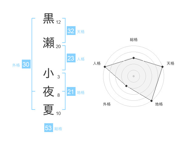 黒瀬 小夜夏さんの総格は53画の3点