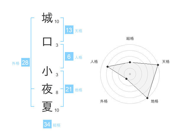 城口 小夜夏さんを姓名の画数から五運を鑑定