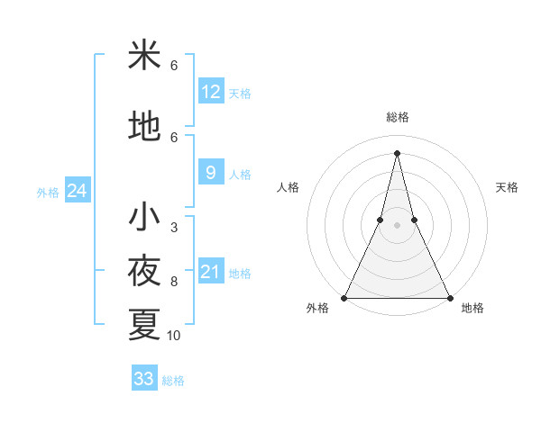 米地 小夜夏さんの総格は33画の4点!