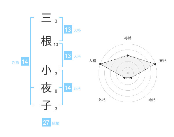 三根 小夜子さんを姓名の画数から五運を鑑定