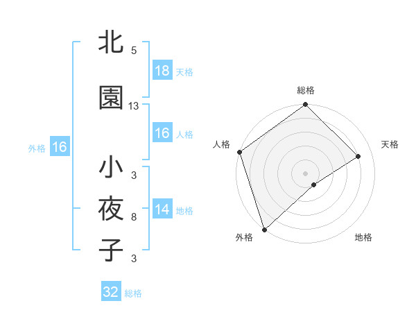 北園 小夜子さんを姓名の画数から五運を鑑定