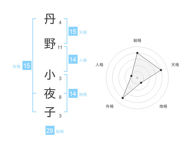 丹野 小夜子さんの天格は15画の4点!
