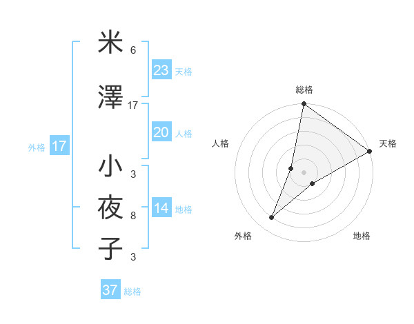 米澤 小夜子さんを姓名の画数から五運を鑑定