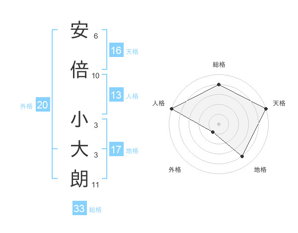 安倍 小大朗さんを姓名の画数から五運を鑑定