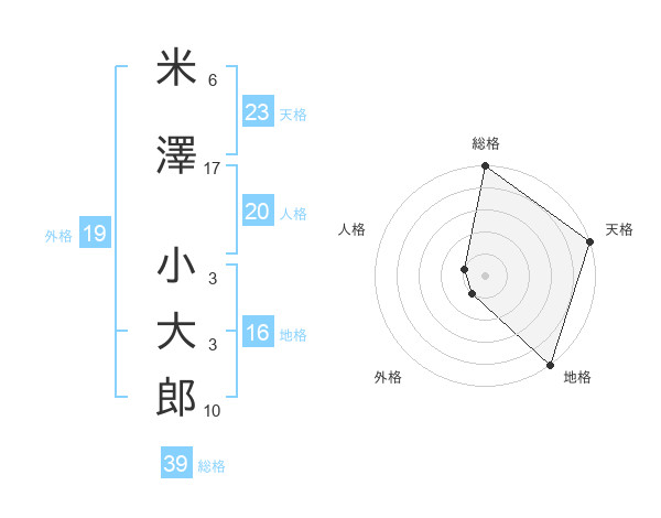 米澤 小大郎さんの総格は39画の5点!