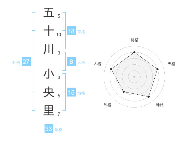 五十川 小央里さんを姓名の画数から五運を鑑定