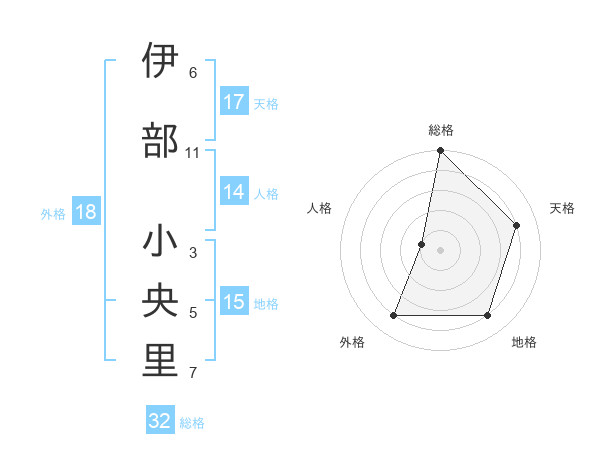 伊部 小央里さんの天格は17画の4点!