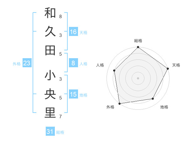 和久田 小央里さんを姓名の画数から五運を鑑定