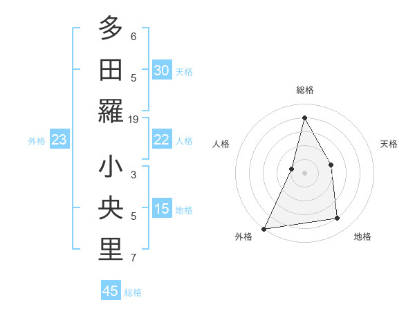 多田羅 小央里さんを姓名の画数から五運を鑑定