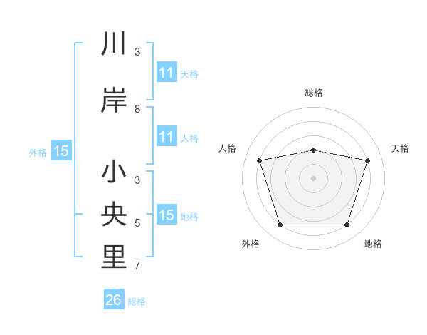 川岸 小央里さんの天格は11画の4点!