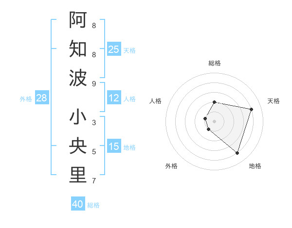 阿知波 小央里さんを姓名の画数から五運を鑑定