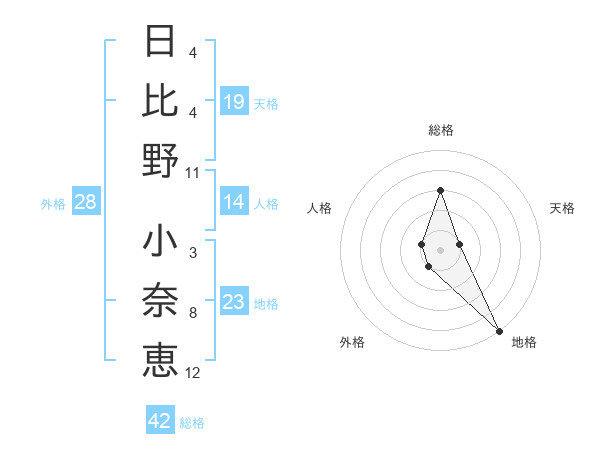 日比野 小奈恵さんを姓名の画数から五運を鑑定