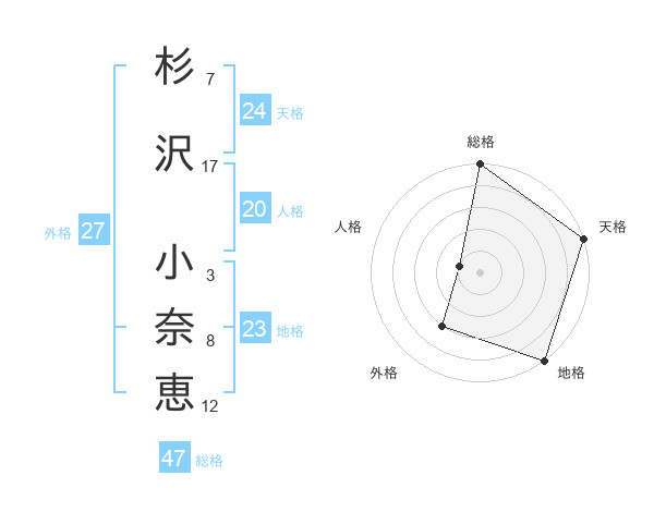 杉沢 小奈恵さんの総格は47画の5点!