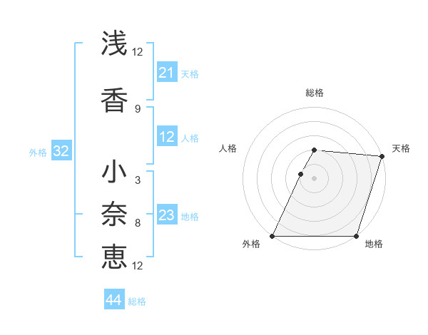 浅香 小奈恵さんの天格は21画の5点!