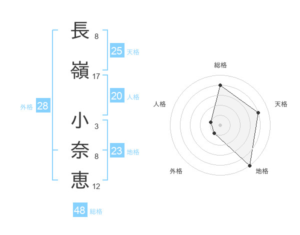 長嶺 小奈恵さんの外格は28画の1点!