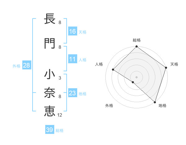 長門 小奈恵さんを姓名の画数から五運を鑑定