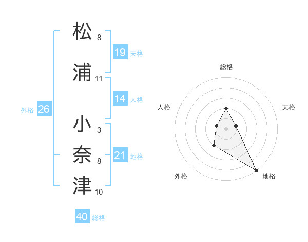 松浦 小奈津さんの総格は40画の2点