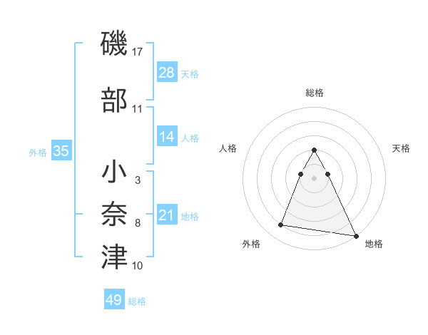 磯部 小奈津さんを姓名の画数から五運を鑑定