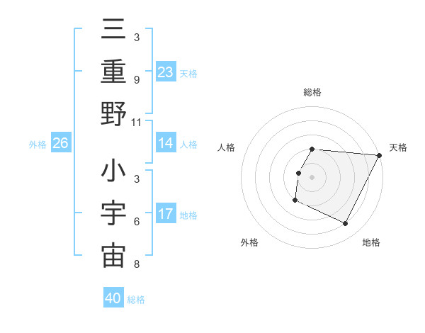 三重野 小宇宙さんを姓名の画数から五運を鑑定
