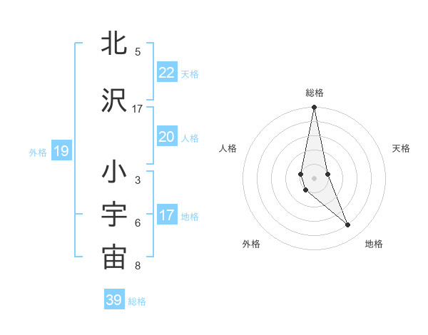 北沢 小宇宙さんの総格は39画の5点