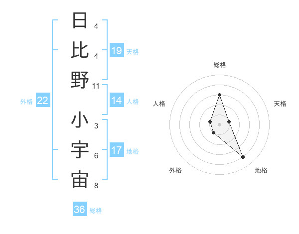 日比野 小宇宙さんを姓名の画数から五運を鑑定