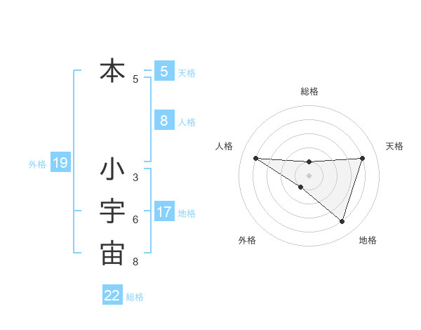 本 小宇宙さんの総格は22画の1点!