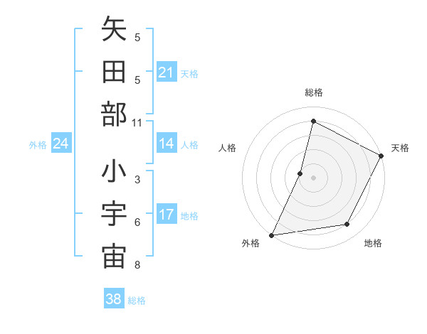 矢田部 小宇宙さんを姓名の画数から五運を鑑定