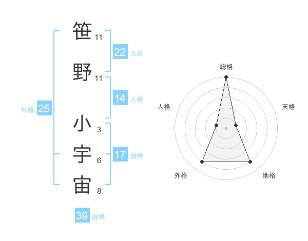 笹野 小宇宙さんを姓名の画数から五運を鑑定