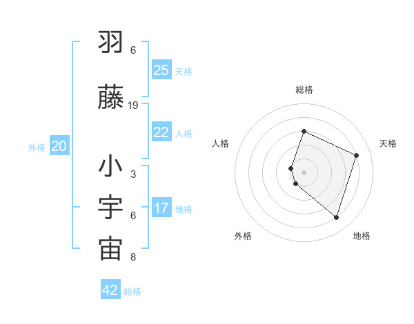 羽藤 小宇宙さんを姓名の画数から五運を鑑定