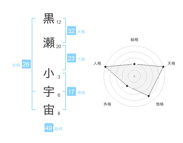 黒瀬 小宇宙さんを姓名の画数から五運を鑑定