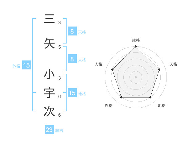 三矢 小宇次さんを姓名の画数から五運を鑑定