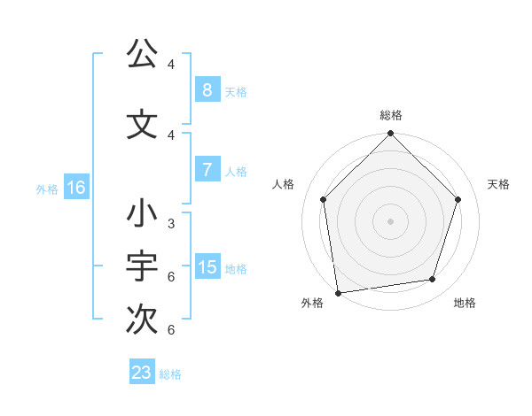公文 小宇次さんを姓名の画数から五運を鑑定