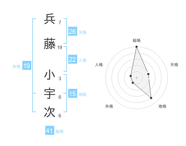 兵藤 小宇次さんを姓名の画数から五運を鑑定