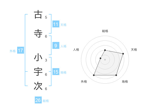 古寺 小宇次さんを姓名の画数から五運を鑑定