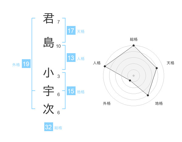 君島 小宇次さんを姓名の画数から五運を鑑定