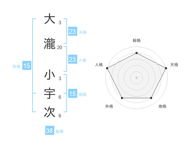 大瀧 小宇次さんを姓名の画数から五運を鑑定