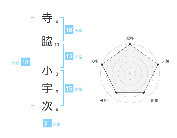 寺脇 小宇次さんを姓名の画数から五運を鑑定