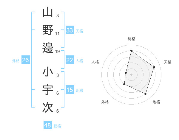 山野邊 小宇次さんの総格は48画の4点