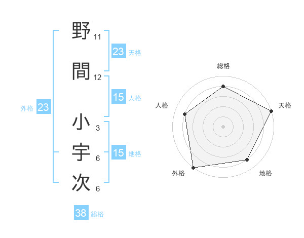 野間 小宇次さんを姓名の画数から五運を鑑定